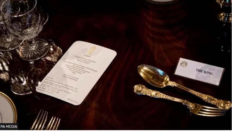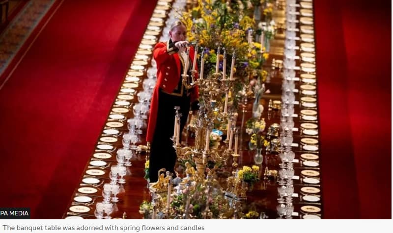 The state banquet, held in the magnificent St George’s Hall, was similarly tailored. While maintaining its customary elegance—with long tables adorned with spring flowers, candles, and fine tableware—the menu was entirely meat-free, reflecting both inclusivity and sensitivity to dietary considerations. Guests were also offered a specially crafted non-alcoholic cocktail, the “crimson bloom,” which blended the Nigerian drink Zobo with English rose soda, hibiscus, and ginger syrup. Alcoholic beverages, including fine wines, port, and whisky, were available for those who wished.